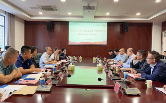9月25日,长沙市安委办在长高校隐患排查与整治行动检查组专家一行来我校检查指导安全工作。校党委书记杨念、副校长汪东明、党政办主任邓青林、学生工作处处长邝继红、安全保卫处处长夏武科、实验室与设备管理处处长杨顺、后勤处处长王琦以及相关工作人员陪同检查。校党委书记杨念代表学校欢迎专家组来校检查和指导工作,并对学校情况进行了简要介绍。专家组带队组长金世雄介绍了本次检查行动的主要内容和相关流程安排,随后,专...