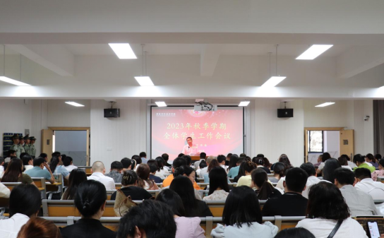 9月5日上午9:30,我校在八教205教室召开2023年秋季新学期全体学生工作会议。副校长鞠晨曦作了新学期开学工作专题报告。各二级学院党总支书记、全体辅导员、学工处工作人员以及园区主任参加了会议。会议由学生工作处处长邝继红主持。鞠晨曦副校长在会上传达了学校中层会议精神,详细阐述了学工系统本学期的重点工作:一是进一步加强学风建设。本学期要在继续抓好学生行为管理的同时,更加注重关注学生的学习和成长成才,以“激发...